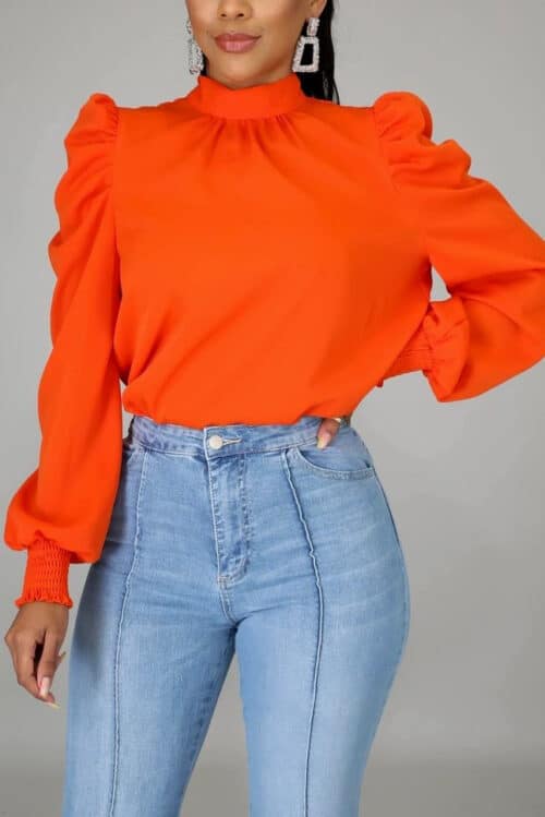 Come See Me – Solid long sleeve blouse with mesh bottom. Belt is included.